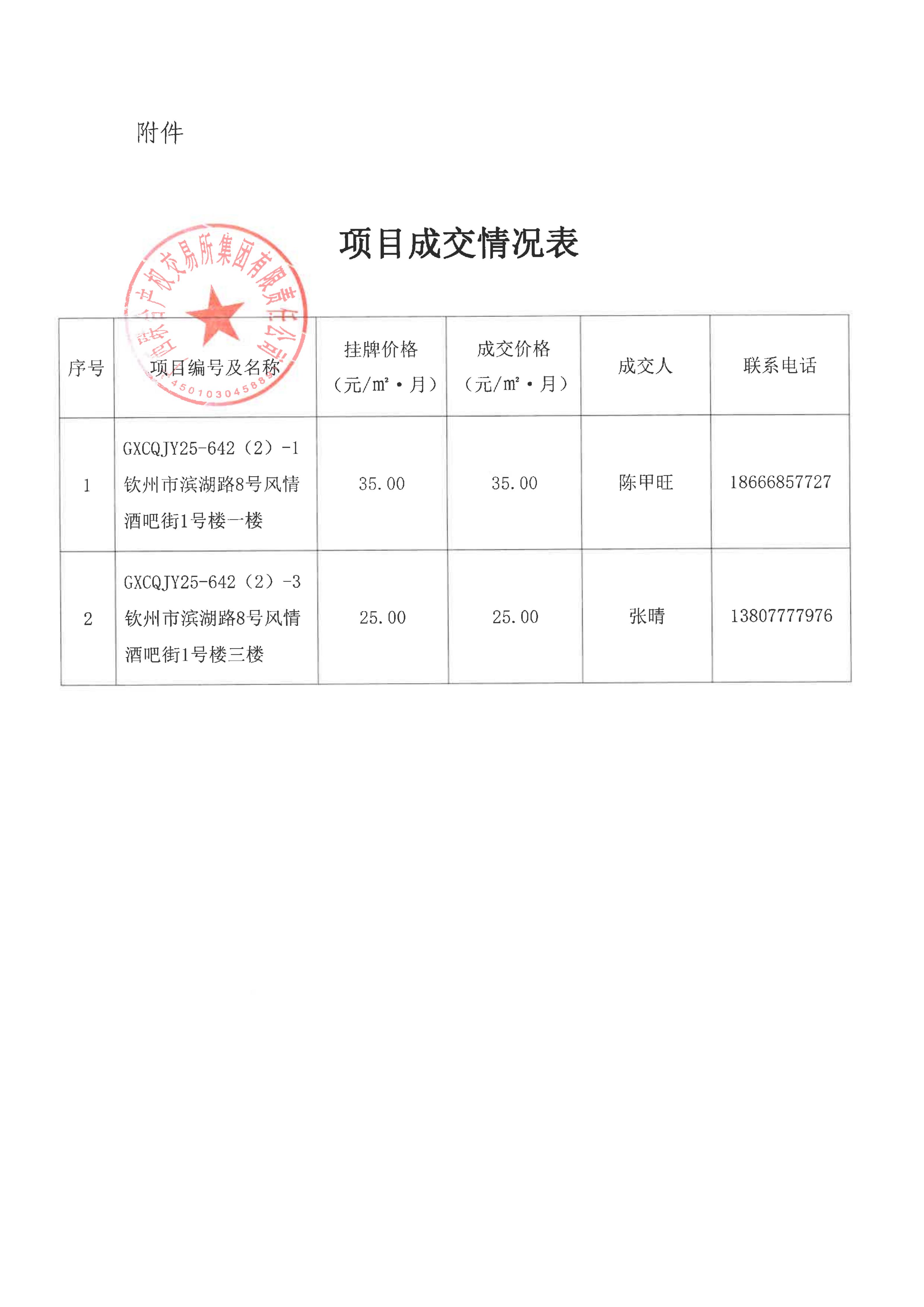 關(guān)于欽州市濱湖路8號風(fēng)情酒吧街(蘭亭街)房屋公開招租項目成交情況的函(1#-1)