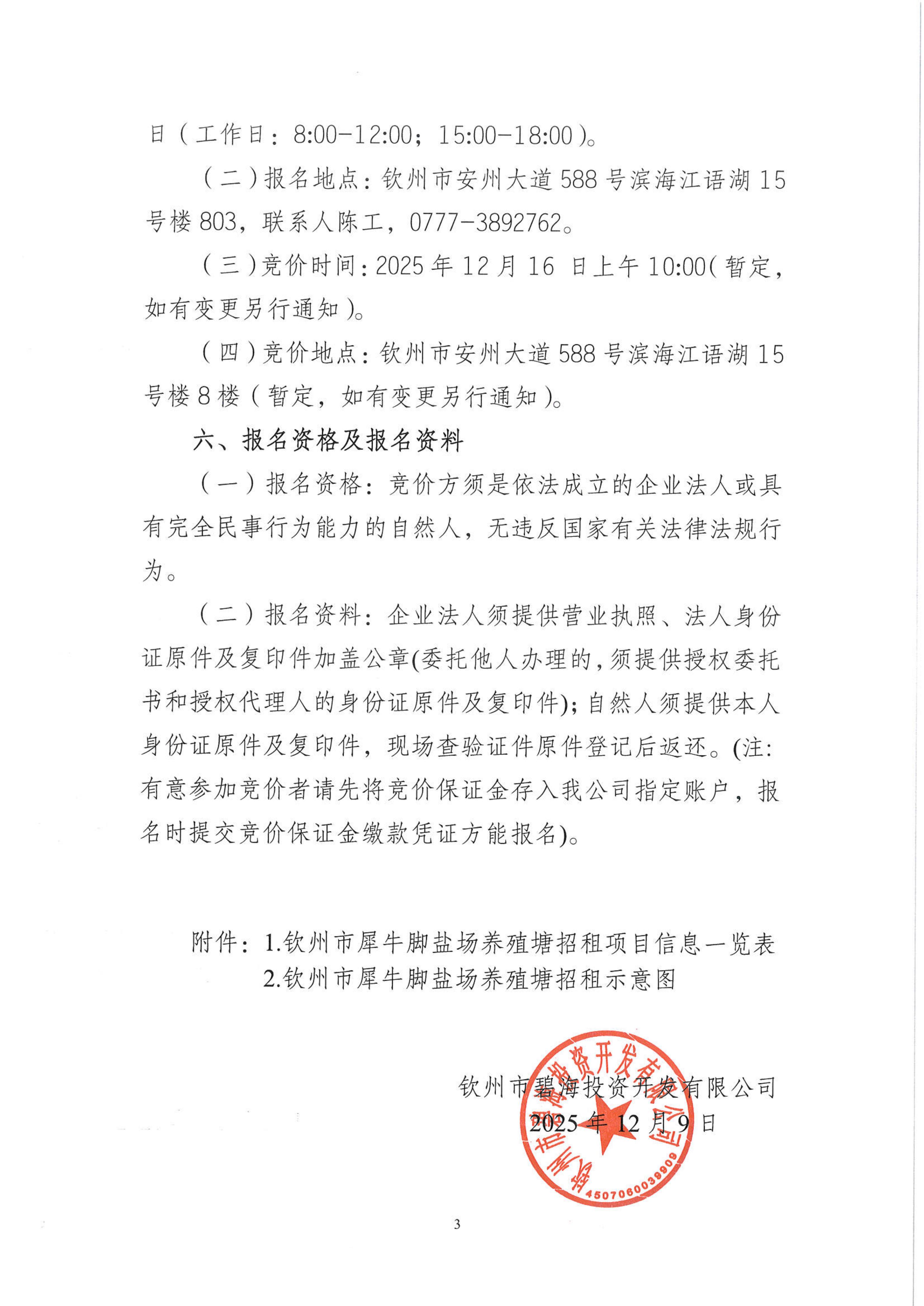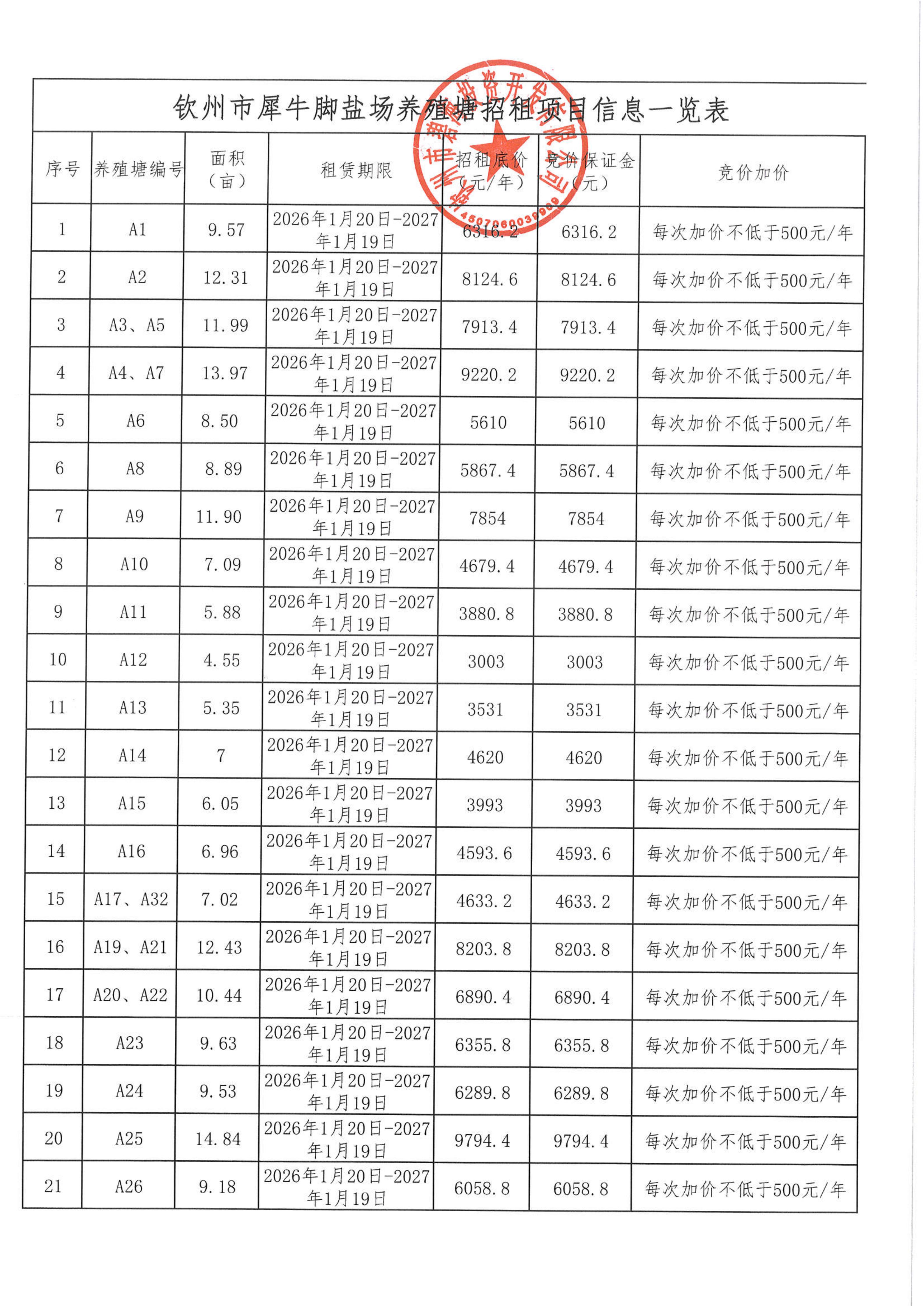 關(guān)于犀牛腳鹽場(chǎng)養(yǎng)殖塘公開招租的公告